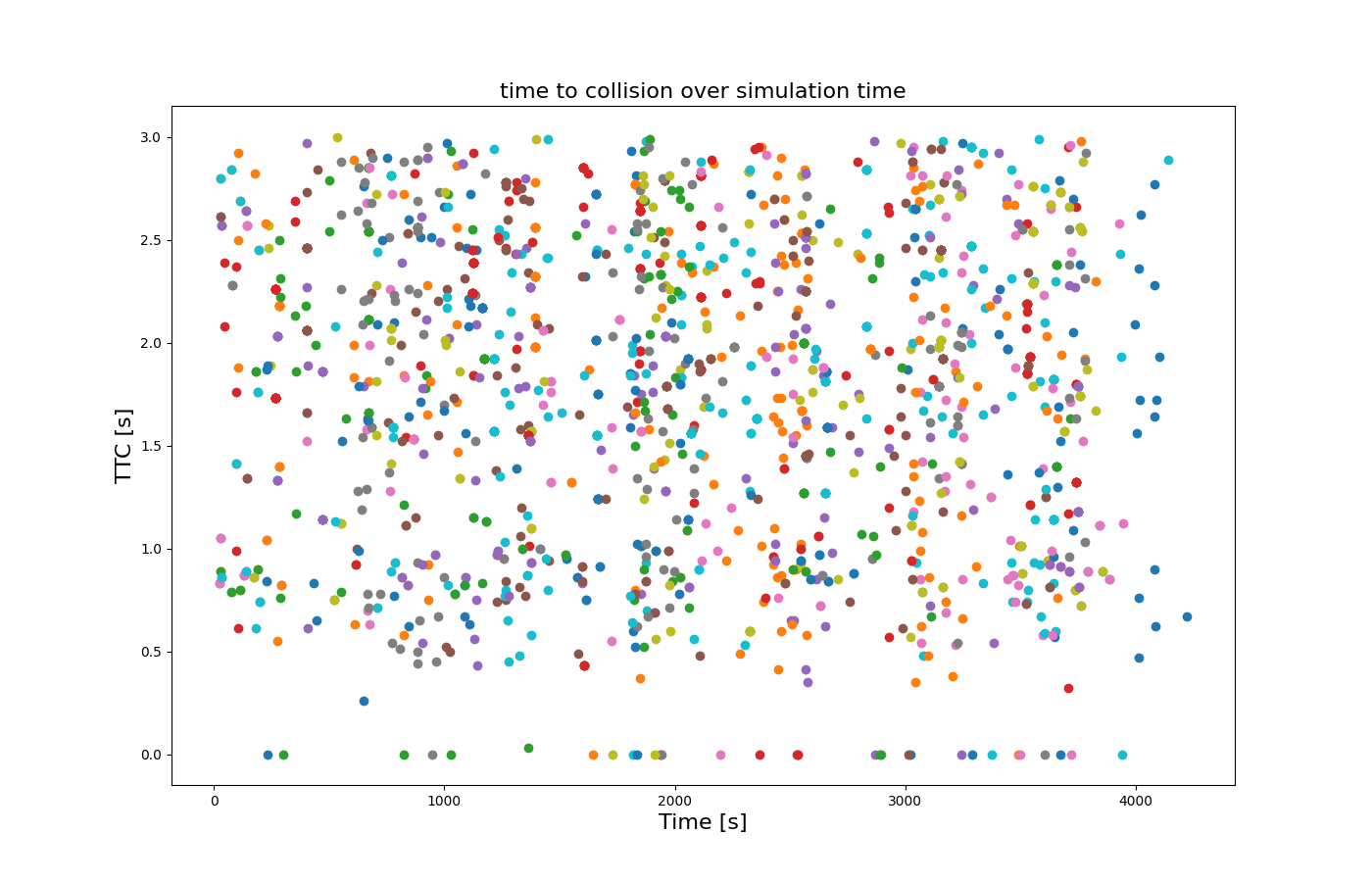 python.exe .\plotXMLAttributes.py ssm.xml -x time --xlabel "Time [s]" -y value --ylabel "TTC [s]" -i ego --filter-ids bus_* --title "time to collision over simulation time" --scatterplot